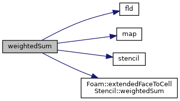 | static tmp< VolField< Type > > | weightedSum (const distributionMap &map, const labelListList &stencil, const SurfaceField< Type > &fld, const List< List< scalar >> &stencilWeights) |