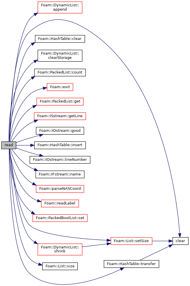 References DynamicList< T, SizeInc, SizeMult, SizeDiv >::append(), clear(), HashTable< T, Key, Hash >::clear(), DynamicList< T, SizeInc, SizeMult, SizeDiv >::clearStorage(), PackedList< nBits >::count(), Foam::e, Foam::exit(), Foam::FatalError, FatalErrorInFunction, forAll, PackedList< nBits >::get(), ISstream::getLine(), IOstream::good(), HashTable< T, Key, Hash >::insert(), IOstream::lineNumber(), IFstream::name(), Foam::nl, Foam::parseNASCoord(), points, Foam::readLabel(), PackedBoolList::set(), List< T >::setSize(), DynamicList< T, SizeInc, SizeMult, SizeDiv >::shrink(), List< T >::size(), HashTable< T, Key, Hash >::transfer(), x, and y.