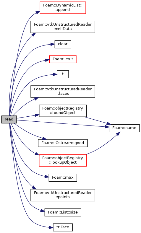 References DynamicList< T, SizeInc, SizeMult, SizeDiv >::append(), vtkUnstructuredReader::cellData(), clear(), Foam::exit(), f(), vtkUnstructuredReader::faces(), Foam::FatalError, FatalErrorInFunction, forAll, objectRegistry::foundObject(), IOstream::good(), objectRegistry::lookupObject(), Foam::max(), Foam::name(), vtkUnstructuredReader::points(), List< T >::size(), and triFace().