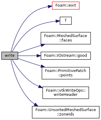 References Foam::exit(), f(), MeshedSurface< Face >::faces(), Foam::FatalError, FatalErrorInFunction, forAll, IOstream::good(), Foam::nl, PrimitivePatch< FaceList, PointField >::points(), Foam::vtkWriteOps::writeHeader(), and UnsortedMeshedSurface< Face >::zoneIds().