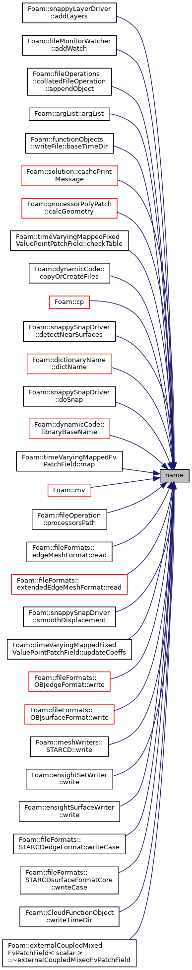 Referenced by snappyLayerDriver::addLayers(), fileMonitorWatcher::addWatch(), collatedFileOperation::appendObject(), argList::argList(), writeFile::baseTimeDir(), solution::cachePrintMessage(), processorPolyPatch::calcGeometry(), timeVaryingMappedFixedValuePointPatchField< Type >::checkTable(), dynamicCode::copyOrCreateFiles(), Foam::cp(), snappySnapDriver::detectNearSurfaces(), dictionaryName::dictName(), snappySnapDriver::doSnap(), dynamicCode::libraryBaseName(), timeVaryingMappedFvPatchField< Type >::map(), Foam::mv(), fileOperation::processorsPath(), edgeMeshFormat::read(), extendedEdgeMeshFormat::read(), snappySnapDriver::smoothDisplacement(), timeVaryingMappedFixedValuePointPatchField< Type >::updateCoeffs(), OBJedgeFormat::write(), OBJsurfaceFormat< Face >::write(), STARCD::write(), ensightSetWriter::write(), ensightSurfaceWriter::write(), STARCDedgeFormat::writeCase(), STARCDsurfaceFormatCore::writeCase(), CloudFunctionObject< CloudType >::writeTimeDir(), and externalCoupledMixedFvPatchField< scalar >::~externalCoupledMixedFvPatchField().