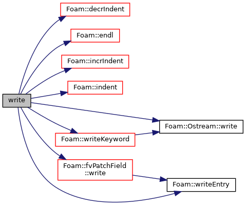 References token::BEGIN_BLOCK, Foam::decrIndent(), token::END_BLOCK, Foam::endl(), Foam::incrIndent(), Foam::indent(), Foam::nl, Ostream::write(), fvPatchField< Type >::write(), Foam::writeEntry(), and Foam::writeKeyword().