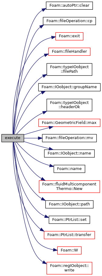 References autoPtr< T >::clear(), fileOperation::cp(), Foam::dimless, Foam::dimMass, Foam::dimMoles, Foam::exit(), Foam::FatalError, FatalErrorInFunction, Foam::fileHandler(), typeIOobject< Type >::filePath(), forAll, IOobject::groupName(), typeIOobject< Type >::headerOk(), GeometricField< Type, GeoMesh, PrimitiveField >::max(), IOobject::MUST_READ, fileOperation::mv(), IOobject::name(), Foam::name(), fluidMulticomponentThermo::New(), IOobject::NO_WRITE, IOobject::path(), IOobject::READ_IF_PRESENT, PtrList< T >::set(), thermo, PtrList< T >::transfer(), Foam::W(), regIOobject::write(), and Y.