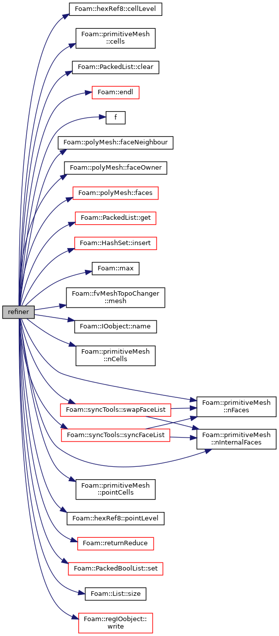 References hexRef8::cellLevel(), primitiveMesh::cells(), PackedList< nBits >::clear(), Foam::endl(), f(), polyMesh::faceNeighbour(), polyMesh::faceOwner(), polyMesh::faces(), forAll, PackedList< nBits >::get(), Foam::Info, HashSet< Key, Hash >::insert(), Foam::max(), fvMeshTopoChanger::mesh(), IOobject::name(), primitiveMesh::nCells(), primitiveMesh::nFaces(), primitiveMesh::nInternalFaces(), primitiveMesh::pointCells(), hexRef8::pointLevel(), Foam::returnReduce(), PackedBoolList::set(), List< T >::size(), syncTools::swapFaceList(), syncTools::syncFaceList(), and regIOobject::write().