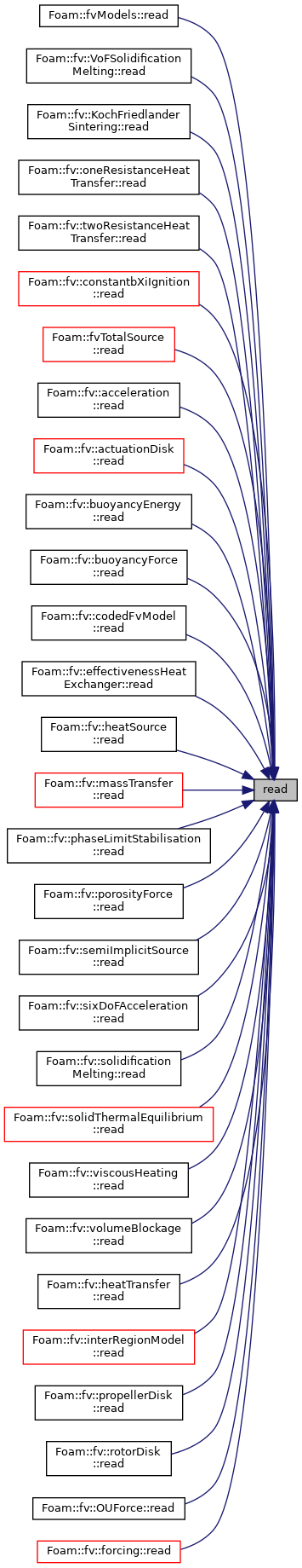 Referenced by fvModels::read(), VoFSolidificationMelting::read(), KochFriedlanderSintering::read(), oneResistanceHeatTransfer::read(), twoResistanceHeatTransfer::read(), constantbXiIgnition::read(), fvTotalSource::read(), acceleration::read(), actuationDisk::read(), buoyancyEnergy::read(), buoyancyForce::read(), codedFvModel::read(), effectivenessHeatExchanger::read(), heatSource::read(), massTransfer::read(), phaseLimitStabilisation::read(), porosityForce::read(), semiImplicitSource::read(), sixDoFAcceleration::read(), solidificationMelting::read(), solidThermalEquilibrium::read(), viscousHeating::read(), volumeBlockage::read(), heatTransfer::read(), interRegionModel::read(), propellerDisk::read(), rotorDisk::read(), OUForce::read(), and forcing::read().