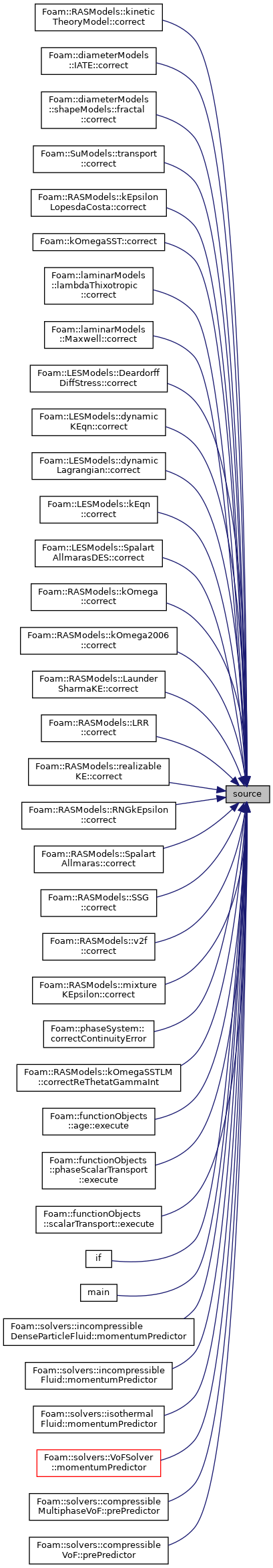 Referenced by kineticTheoryModel::correct(), IATE::correct(), fractal::correct(), transport::correct(), kEpsilonLopesdaCosta< BasicMomentumTransportModel >::correct(), kOmegaSST< MomentumTransportModel, BasicMomentumTransportModel >::correct(), lambdaThixotropic< BasicMomentumTransportModel >::correct(), Maxwell< BasicMomentumTransportModel >::correct(), DeardorffDiffStress< BasicMomentumTransportModel >::correct(), dynamicKEqn< BasicMomentumTransportModel >::correct(), dynamicLagrangian< BasicMomentumTransportModel >::correct(), kEqn< BasicMomentumTransportModel >::correct(), SpalartAllmarasDES< BasicMomentumTransportModel >::correct(), kOmega< BasicMomentumTransportModel >::correct(), kOmega2006< BasicMomentumTransportModel >::correct(), LaunderSharmaKE< BasicMomentumTransportModel >::correct(), LRR< BasicMomentumTransportModel >::correct(), realizableKE< BasicMomentumTransportModel >::correct(), RNGkEpsilon< BasicMomentumTransportModel >::correct(), SpalartAllmaras< BasicMomentumTransportModel >::correct(), SSG< BasicMomentumTransportModel >::correct(), v2f< BasicMomentumTransportModel >::correct(), mixtureKEpsilon< BasicMomentumTransportModel >::correct(), phaseSystem::correctContinuityError(), kOmegaSSTLM< BasicMomentumTransportModel >::correctReThetatGammaInt(), age::execute(), phaseScalarTransport::execute(), scalarTransport::execute(), if(), main(), incompressibleDenseParticleFluid::momentumPredictor(), incompressibleFluid::momentumPredictor(), isothermalFluid::momentumPredictor(), VoFSolver::momentumPredictor(), compressibleMultiphaseVoF::prePredictor(), and compressibleVoF::prePredictor().