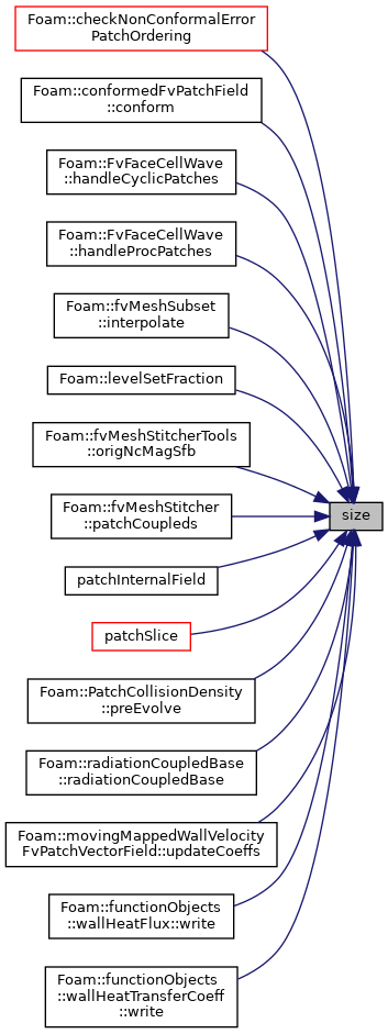 Referenced by Foam::checkNonConformalErrorPatchOrdering(), conformedFvPatchField< Type >::conform(), FvFaceCellWave< Type, TrackingData >::handleCyclicPatches(), FvFaceCellWave< Type, TrackingData >::handleProcPatches(), fvMeshSubset::interpolate(), Foam::levelSetFraction(), Foam::fvMeshStitcherTools::origNcMagSfb(), fvMeshStitcher::patchCoupleds(), fvPatch::patchInternalField(), fvPatch::patchSlice(), PatchCollisionDensity< CloudType >::preEvolve(), radiationCoupledBase::radiationCoupledBase(), movingMappedWallVelocityFvPatchVectorField::updateCoeffs(), wallHeatFlux::write(), and wallHeatTransferCoeff::write().