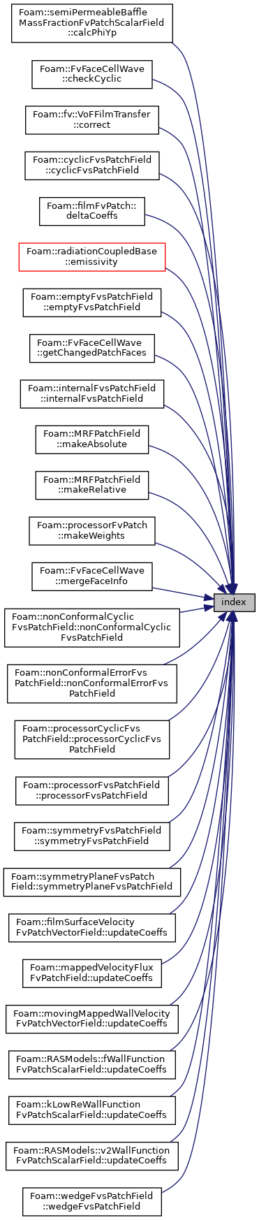 Referenced by semiPermeableBaffleMassFractionFvPatchScalarField::calcPhiYp(), FvFaceCellWave< Type, TrackingData >::checkCyclic(), VoFFilmTransfer::correct(), cyclicFvsPatchField< Type >::cyclicFvsPatchField(), filmFvPatch::deltaCoeffs(), radiationCoupledBase::emissivity(), emptyFvsPatchField< Type >::emptyFvsPatchField(), FvFaceCellWave< Type, TrackingData >::getChangedPatchFaces(), internalFvsPatchField< Type >::internalFvsPatchField(), MRFPatchField::makeAbsolute(), MRFPatchField::makeRelative(), processorFvPatch::makeWeights(), FvFaceCellWave< Type, TrackingData >::mergeFaceInfo(), nonConformalCyclicFvsPatchField< Type >::nonConformalCyclicFvsPatchField(), nonConformalErrorFvsPatchField< Type >::nonConformalErrorFvsPatchField(), processorCyclicFvsPatchField< Type >::processorCyclicFvsPatchField(), processorFvsPatchField< Type >::processorFvsPatchField(), symmetryFvsPatchField< Type >::symmetryFvsPatchField(), symmetryPlaneFvsPatchField< Type >::symmetryPlaneFvsPatchField(), filmSurfaceVelocityFvPatchVectorField::updateCoeffs(), mappedVelocityFluxFvPatchField::updateCoeffs(), movingMappedWallVelocityFvPatchVectorField::updateCoeffs(), fWallFunctionFvPatchScalarField::updateCoeffs(), kLowReWallFunctionFvPatchScalarField::updateCoeffs(), v2WallFunctionFvPatchScalarField::updateCoeffs(), and wedgeFvsPatchField< Type >::wedgeFvsPatchField().