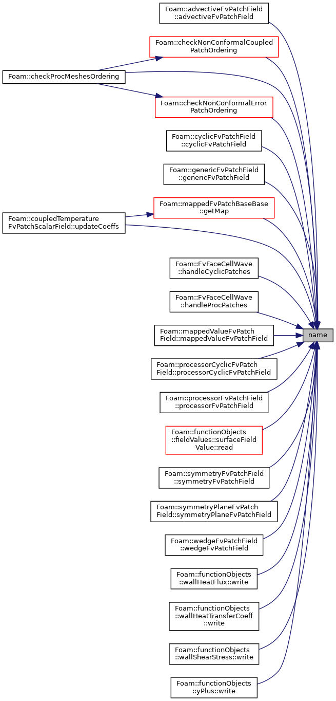 Referenced by advectiveFvPatchField< Type >::advectiveFvPatchField(), Foam::checkNonConformalCoupledPatchOrdering(), Foam::checkNonConformalErrorPatchOrdering(), Foam::checkProcMeshesOrdering(), cyclicFvPatchField< Type >::cyclicFvPatchField(), genericFvPatchField< Type >::genericFvPatchField(), mappedFvPatchBaseBase::getMap(), FvFaceCellWave< Type, TrackingData >::handleCyclicPatches(), FvFaceCellWave< Type, TrackingData >::handleProcPatches(), mappedValueFvPatchField< Type >::mappedValueFvPatchField(), processorCyclicFvPatchField< Type >::processorCyclicFvPatchField(), processorFvPatchField< Type >::processorFvPatchField(), surfaceFieldValue::read(), symmetryFvPatchField< Type >::symmetryFvPatchField(), symmetryPlaneFvPatchField< Type >::symmetryPlaneFvPatchField(), coupledTemperatureFvPatchScalarField::updateCoeffs(), wedgeFvPatchField< Type >::wedgeFvPatchField(), wallHeatFlux::write(), wallHeatTransferCoeff::write(), wallShearStress::write(), and yPlus::write().