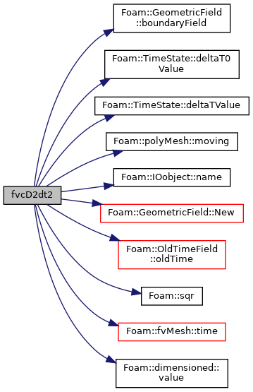 | tmp< VolField< Type > > | fvcD2dt2 (const volScalarField &, const VolField< Type > &) |