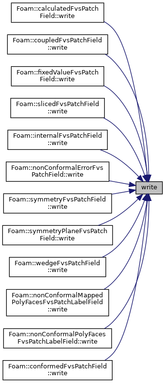 Referenced by calculatedFvsPatchField< Type >::write(), coupledFvsPatchField< Type >::write(), fixedValueFvsPatchField< Type >::write(), slicedFvsPatchField< Type >::write(), internalFvsPatchField< Type >::write(), nonConformalErrorFvsPatchField< Type >::write(), symmetryFvsPatchField< Type >::write(), symmetryPlaneFvsPatchField< Type >::write(), wedgeFvsPatchField< Type >::write(), nonConformalMappedPolyFacesFvsPatchLabelField::write(), nonConformalPolyFacesFvsPatchLabelField::write(), and conformedFvsPatchField< Type >::write().