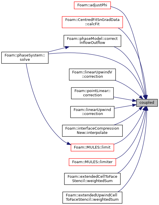 Referenced by Foam::adjustPhi(), CentredFitSnGradData< Polynomial >::calcFit(), phaseModel::correctInflowOutflow(), linearUpwindV< Type >::correction(), pointLinear< Type >::correction(), linearUpwind< Type >::correction(), interfaceCompressionNew::interpolate(), Foam::MULES::limit(), Foam::MULES::limiter(), phaseSystem::solve(), extendedCellToFaceStencil::weightedSum(), and extendedUpwindCellToFaceStencil::weightedSum().