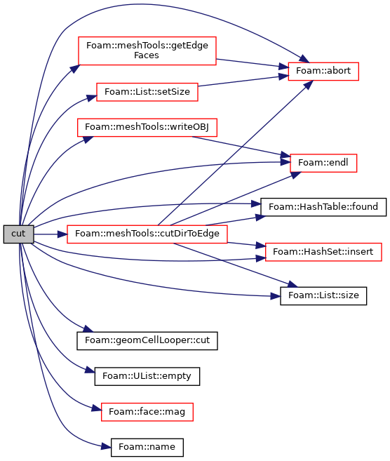 References Foam::abort(), cells, cellShapes, geomCellLooper::cut(), Foam::meshTools::cutDirToEdge(), UList< T >::empty(), Foam::endl(), Foam::FatalError, FatalErrorInFunction, forAll, HashTable< T, Key, Hash >::found(), Foam::meshTools::getEdgeFaces(), HashSet< Key, Hash >::insert(), face::mag(), mesh, Foam::name(), points, Foam::Pout, List< T >::setSize(), List< T >::size(), success, WarningInFunction, and Foam::meshTools::writeOBJ().
