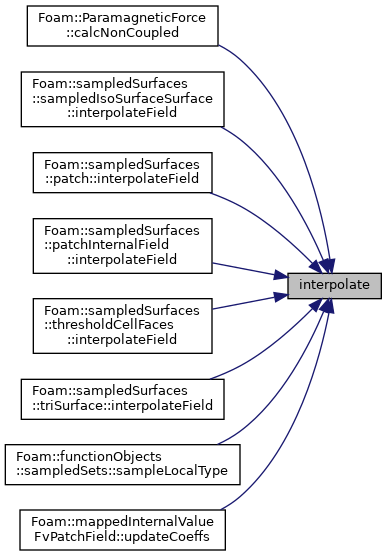 Referenced by ParamagneticForce< CloudType >::calcNonCoupled(), sampledIsoSurfaceSurface::interpolateField(), patch::interpolateField(), patchInternalField::interpolateField(), thresholdCellFaces::interpolateField(), triSurface::interpolateField(), sampledSets::sampleLocalType(), and mappedInternalValueFvPatchField< Type >::updateCoeffs().