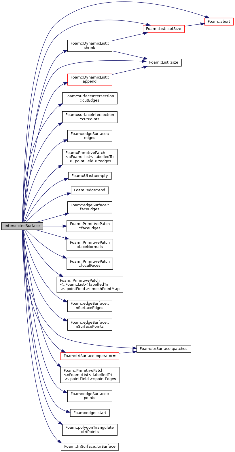 References Foam::abort(), DynamicList< T, SizeInc, SizeMult, SizeDiv >::append(), surfaceIntersection::cutEdges(), surfaceIntersection::cutPoints(), Foam::e, edgeSurface::edges(), PrimitivePatch<::Foam::List< labelledTri >, pointField >::edges(), UList< T >::empty(), edge::end(), edgeSurface::faceEdges(), PrimitivePatch< FaceList, PointField >::faceEdges(), PrimitivePatch< FaceList, PointField >::faceNormals(), Foam::FatalError, FatalErrorInFunction, forAll, PrimitivePatch< FaceList, PointField >::localFaces(), PrimitivePatch<::Foam::List< labelledTri >, pointField >::meshPointMap(), n, edgeSurface::nSurfaceEdges(), edgeSurface::nSurfacePoints(), UList< T >::operator, triSurface::operator=(), triSurface::patches(), PrimitivePatch<::Foam::List< labelledTri >, pointField >::pointEdges(), edgeSurface::points(), List< T >::setSize(), DynamicList< T, SizeInc, SizeMult, SizeDiv >::shrink(), List< T >::size(), edge::start(), polygonTriangulate::triPoints(), and triSurface::triSurface().