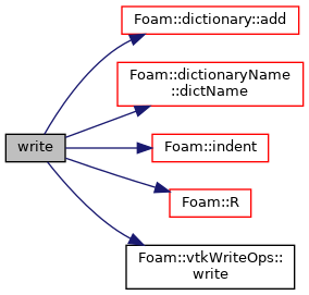 References dictionary::add(), dict, dictionaryName::dictName(), Foam::indent(), Foam::R(), and Foam::vtkWriteOps::write().