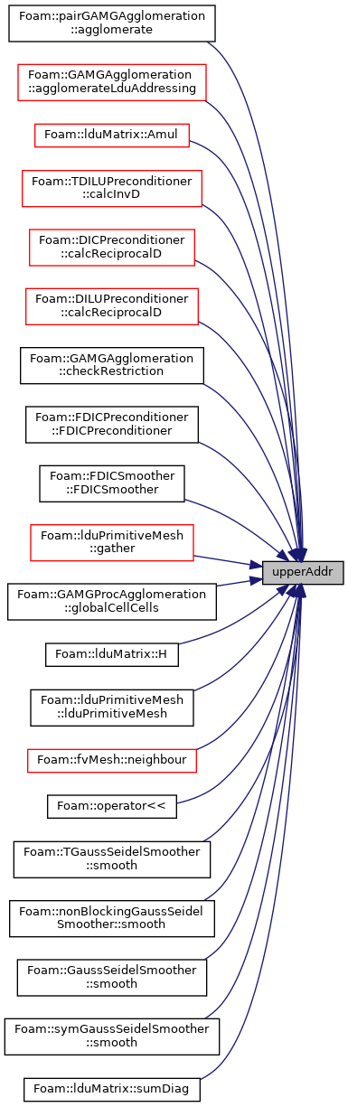Referenced by pairGAMGAgglomeration::agglomerate(), GAMGAgglomeration::agglomerateLduAddressing(), lduMatrix::Amul(), TDILUPreconditioner< Type, DType, LUType >::calcInvD(), DICPreconditioner::calcReciprocalD(), DILUPreconditioner::calcReciprocalD(), GAMGAgglomeration::checkRestriction(), FDICPreconditioner::FDICPreconditioner(), FDICSmoother::FDICSmoother(), lduPrimitiveMesh::gather(), GAMGProcAgglomeration::globalCellCells(), lduMatrix::H(), lduPrimitiveMesh::lduPrimitiveMesh(), fvMesh::neighbour(), Foam::operator<<(), TGaussSeidelSmoother< Type, DType, LUType >::smooth(), nonBlockingGaussSeidelSmoother::smooth(), GaussSeidelSmoother::smooth(), symGaussSeidelSmoother::smooth(), and lduMatrix::sumDiag().