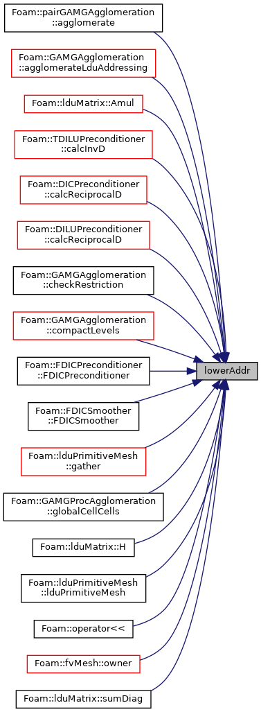 Referenced by pairGAMGAgglomeration::agglomerate(), GAMGAgglomeration::agglomerateLduAddressing(), lduMatrix::Amul(), TDILUPreconditioner< Type, DType, LUType >::calcInvD(), DICPreconditioner::calcReciprocalD(), DILUPreconditioner::calcReciprocalD(), GAMGAgglomeration::checkRestriction(), GAMGAgglomeration::compactLevels(), FDICPreconditioner::FDICPreconditioner(), FDICSmoother::FDICSmoother(), lduPrimitiveMesh::gather(), GAMGProcAgglomeration::globalCellCells(), lduMatrix::H(), lduPrimitiveMesh::lduPrimitiveMesh(), Foam::operator<<(), fvMesh::owner(), and lduMatrix::sumDiag().