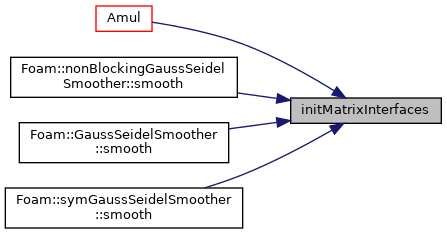 | void | initMatrixInterfaces (const FieldField< Field, scalar > &interfaceCoeffs, const lduInterfaceFieldPtrsList &interfaces, const scalarField &psiif, scalarField &result, const direction cmpt) const |