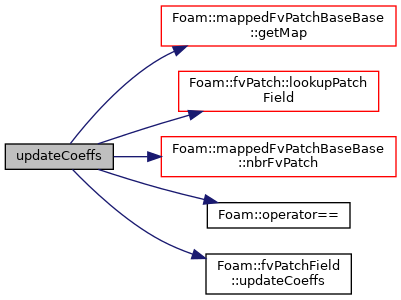 References mappedFvPatchBaseBase::getMap(), fvPatch::lookupPatchField(), mappedFvPatchBaseBase::nbrFvPatch(), Foam::operator==(), and fvPatchField< Type >::updateCoeffs().