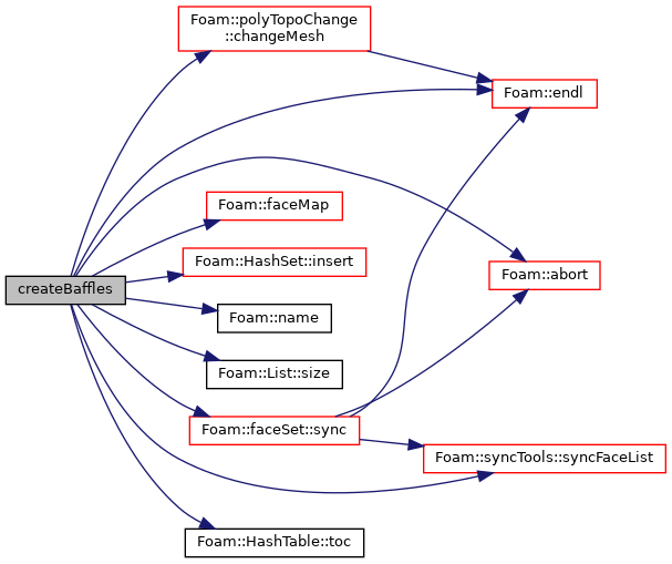 | autoPtr< polyTopoChangeMap > | createBaffles (const labelList &ownPatch, const labelList &nbrPatch) |