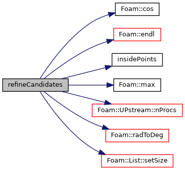 | labelList | refineCandidates (const List< point > &insidePoints, const scalar curvature, const scalar planarAngle, const bool featureRefinement, const bool featureDistanceRefinement, const bool internalRefinement, const bool surfaceRefinement, const bool curvatureRefinement, const bool gapRefinement, const label maxGlobalCells, const label maxLocalCells) const |