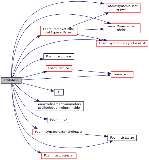 | autoPtr< polyTopoChangeMap > | splitMesh (const label nBufferLayers, const labelList &globalToMasterPatch, const labelList &globalToSlavePatch, const refinementParameters::cellSelectionPoints &selectionPoints) |