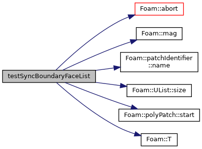 References Foam::abort(), Foam::FatalError, FatalErrorInFunction, forAll, Foam::mag(), patchIdentifier::name(), patches, patchi, UList< T >::size(), polyPatch::start(), and Foam::T().