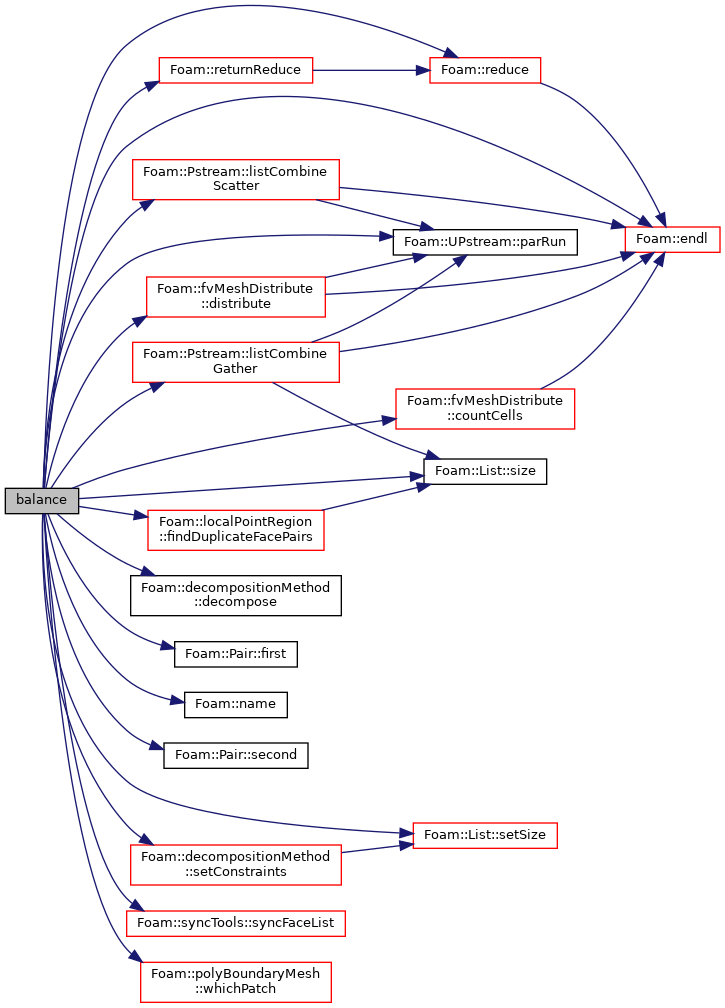 | autoPtr< polyDistributionMap > | balance (const bool keepZoneFaces, const bool keepBaffles, const scalarField &cellWeights, decompositionMethod &decomposer, fvMeshDistribute &distributor) |