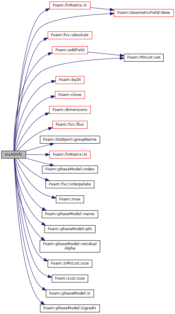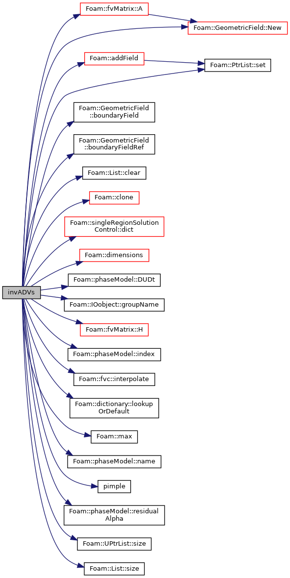| void | invADVs (const PtrList< volScalarField > &As, PtrList< volVectorField > &HVms, PtrList< PtrList< volScalarField >> &invADVs, PtrList< PtrList< surfaceScalarField >> &invADVfs) const |