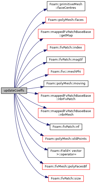 References primitiveMesh::faceCentres(), polyMesh::faces(), forAll, mappedFvPatchBaseBase::getMap(), fvPatch::index(), fvPatch::magSf(), Foam::fvc::meshPhi(), polyMesh::moving(), n, mappedFvPatchBaseBase::nbrFvPatch(), mappedFvPatchBaseBase::nbrMesh(), fvPatch::nf(), polyMesh::oldPoints(), Field< vector >::operator=(), fvMesh::polyFacesBf(), fvPatch::size(), U, and Foam::Zero.
