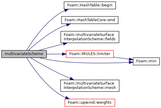 References HashTable< T, Key, Hash >::begin(), HashTableCore::end(), multivariateSurfaceInterpolationScheme< Type >::fields(), Foam::MULES::limiter(), multivariateSurfaceInterpolationScheme< Type >::mesh(), Foam::min(), and upwind< Type >::weights().