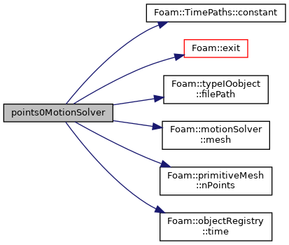 References TimePaths::constant(), Foam::exit(), Foam::FatalError, FatalErrorInFunction, typeIOobject< Type >::filePath(), motionSolver::mesh(), polyMesh::meshSubDir, IOobject::MUST_READ, IOobject::NO_WRITE, primitiveMesh::nPoints(), points0MotionSolver::points0_, and objectRegistry::time().