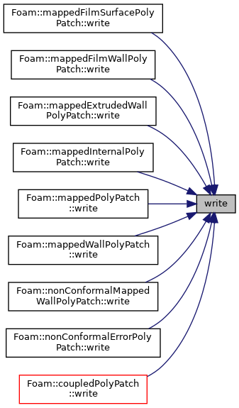 Referenced by mappedFilmSurfacePolyPatch::write(), mappedFilmWallPolyPatch::write(), mappedExtrudedWallPolyPatch::write(), mappedInternalPolyPatch::write(), mappedPolyPatch::write(), mappedWallPolyPatch::write(), nonConformalMappedWallPolyPatch::write(), nonConformalErrorPolyPatch::write(), and coupledPolyPatch::write().