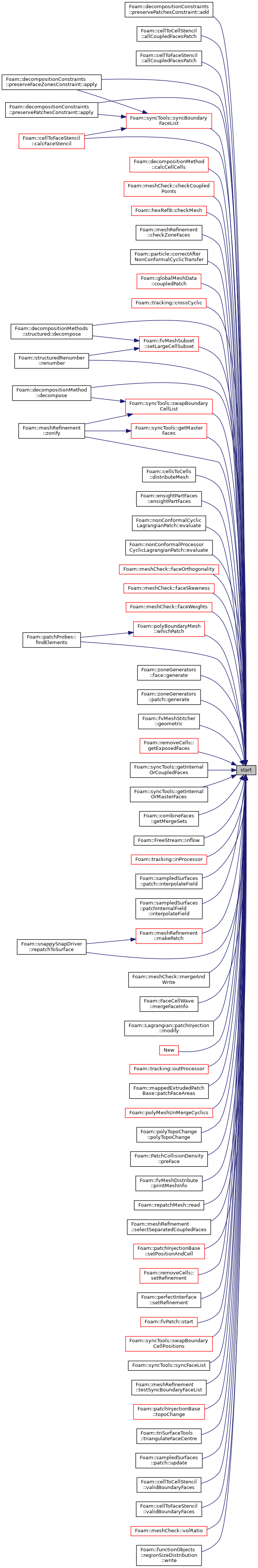 Referenced by preserveFaceZonesConstraint::apply(), preservePatchesConstraint::apply(), structured::decompose(), snappyLayerDriver::doLayers(), Foam::meshCheck::mergeAndWrite(), Foam::tracking::outProcessor(), polyPatch::patchInternalList(), structuredRenumber::renumber(), syncTools::swapBoundaryCellList(), syncTools::swapBoundaryCellPositions(), patchInjectionBase::topoChange(), activeBaffleVelocityFvPatchVectorField::updateCoeffs(), and activePressureForceBaffleVelocityFvPatchVectorField::updateCoeffs().