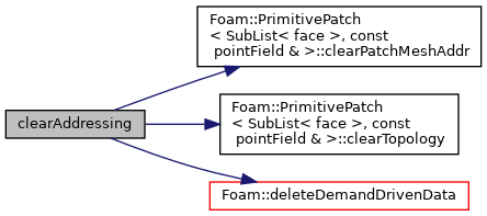 References PrimitivePatch< SubList< face >, const pointField & >::clearPatchMeshAddr(), PrimitivePatch< SubList< face >, const pointField & >::clearTopology(), and Foam::deleteDemandDrivenData().