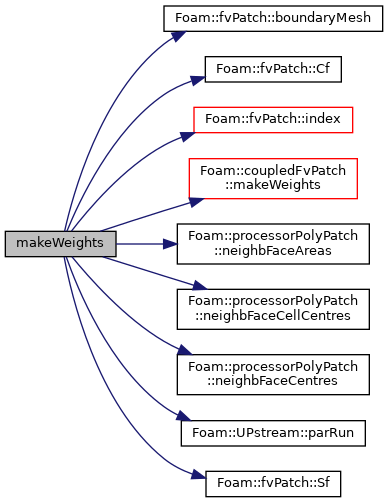 References fvPatch::boundaryMesh(), Foam::saturationModels::C, fvPatch::Cf(), fvPatch::index(), coupledFvPatch::makeWeights(), mesh, processorPolyPatch::neighbFaceAreas(), processorPolyPatch::neighbFaceCellCentres(), processorPolyPatch::neighbFaceCentres(), UPstream::parRun(), and fvPatch::Sf().