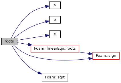References quadraticEqn::a(), quadraticEqn::b(), quadraticEqn::c(), Foam::complex, Foam::nan, Foam::real, linearEqn::roots(), Foam::sign(), Foam::sqrt(), and x.