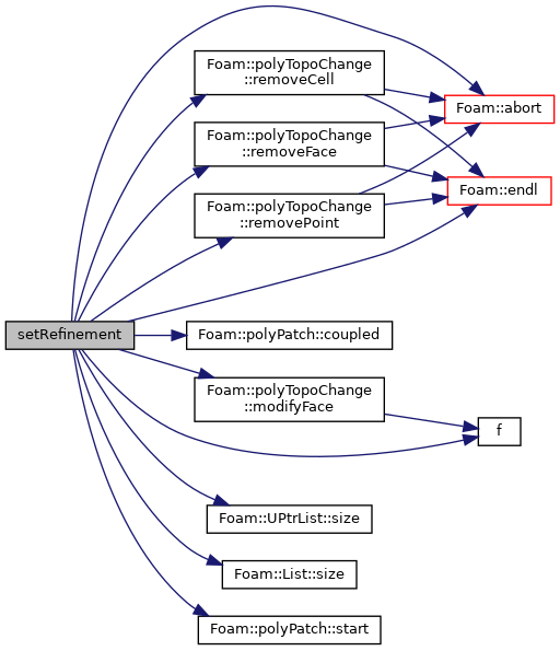 References Foam::abort(), polyPatch::coupled(), Foam::endl(), f(), Foam::FatalError, FatalErrorInFunction, forAll, polyTopoChange::modifyFace(), Foam::nl, patches, patchi, polyTopoChange::removeCell(), polyTopoChange::removeFace(), polyTopoChange::removePoint(), UPtrList< T >::size(), List< T >::size(), polyPatch::start(), and WarningInFunction.