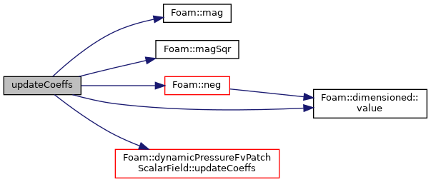 References Foam::mag(), Foam::magSqr(), Foam::neg(), dynamicPressureFvPatchScalarField::updateCoeffs(), and dimensioned< Type >::value().
