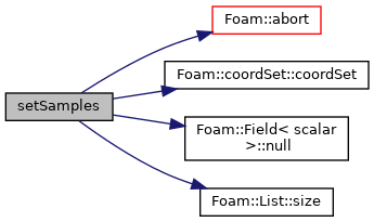 | void | setSamples (const List< point > &samplingPositions, const labelList &samplingSegments, const labelList &samplingCells, const labelList &samplingFaces) |