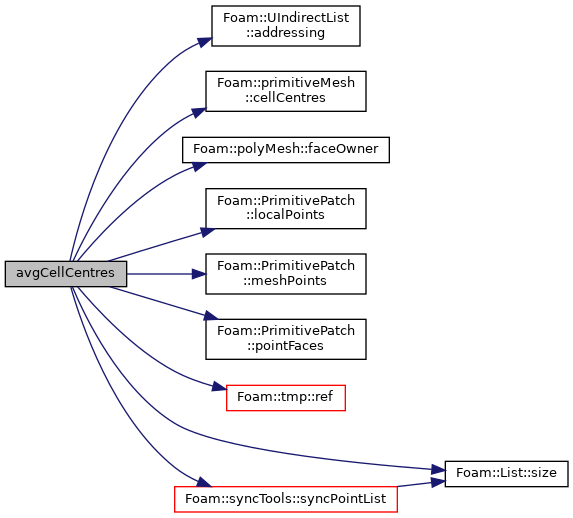 | static tmp< pointField > | avgCellCentres (const fvMesh &mesh, const indirectPrimitivePatch &) |