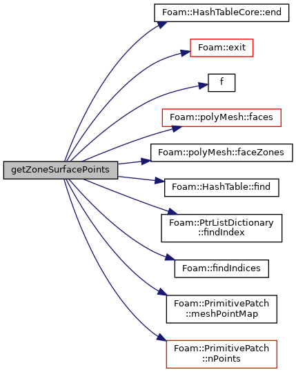 References HashTableCore::end(), Foam::exit(), f(), polyMesh::faces(), polyMesh::faceZones(), Foam::FatalError, FatalErrorInFunction, HashTable< T, Key, Hash >::find(), PtrListDictionary< T >::findIndex(), Foam::findIndices(), forAll, mesh, PrimitivePatch< FaceList, PointField >::meshPointMap(), and PrimitivePatch< FaceList, PointField >::nPoints().