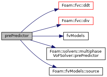 References Foam::fvc::ddt(), Foam::fvc::div(), forAll, fvModels(), multiphaseVoFSolver::prePredictor(), rho, and fvModels::source().