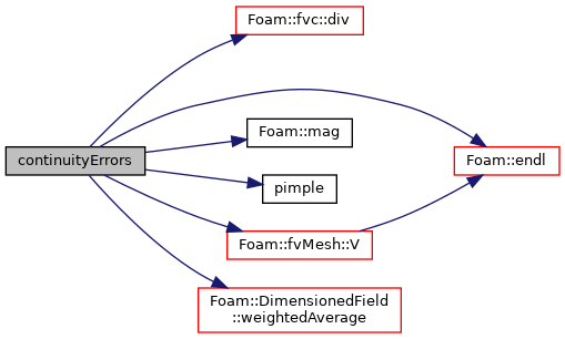 References cumulativeContErr, Foam::fvc::div(), Foam::endl(), globalContErr, Foam::Info, Foam::mag(), mesh, pimple(), sumLocalContErr, fvMesh::V(), and DimensionedField< Type, GeoMesh, PrimitiveField >::weightedAverage().