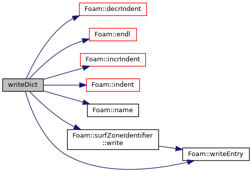 References token::BEGIN_BLOCK, Foam::decrIndent(), token::END_BLOCK, Foam::endl(), Foam::incrIndent(), Foam::indent(), Foam::name(), Foam::nl, surfZoneIdentifier::write(), and Foam::writeEntry().