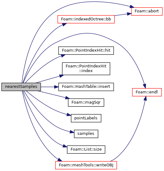 References Foam::abort(), indexedOctree< Type >::bb(), Foam::endl(), Foam::FatalError, FatalErrorInFunction, forAll, forAllConstIter, PointIndexHit< Point >::hit(), PointIndexHit< Point >::index(), HashTable< T, Key, Hash >::insert(), Foam::magSqr(), pointLabels(), Foam::Pout, samples(), List< T >::size(), and Foam::meshTools::writeOBJ().