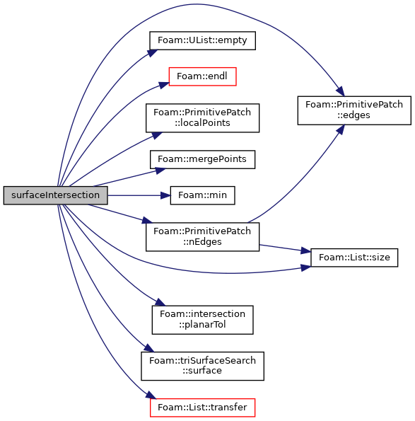 References Foam::e, PrimitivePatch< FaceList, PointField >::edges(), UList< T >::empty(), Foam::endl(), forAll, PrimitivePatch< FaceList, PointField >::localPoints(), Foam::mergePoints(), Foam::min(), PrimitivePatch< FaceList, PointField >::nEdges(), intersection::planarTol(), Foam::Pout, List< T >::size(), triSurfaceSearch::surface(), and List< T >::transfer().