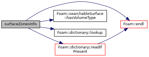 | surfaceZonesInfo (const searchableSurface &surface, const dictionary &surfacesDict) | |