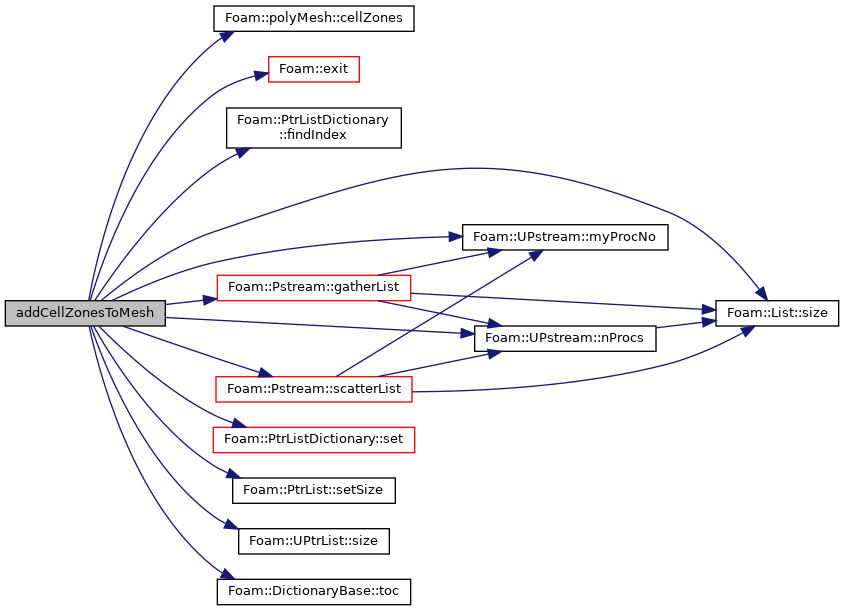 References polyMesh::cellZones(), Foam::exit(), Foam::FatalError, FatalErrorInFunction, PtrListDictionary< T >::findIndex(), forAll, Pstream::gatherList(), mesh, UPstream::myProcNo(), Foam::nl, UPstream::nProcs(), word::null, Pstream::scatterList(), PtrListDictionary< T >::set(), PtrList< T >::setSize(), UPtrList< T >::size(), List< T >::size(), and DictionaryBase< IDLListType, T >::toc().